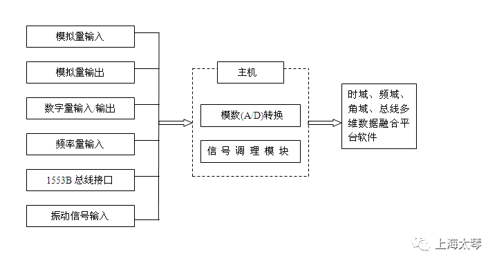 航天發(fā)動(dòng)機(jī)多維度數(shù)據(jù)融合評(píng)價(jià)系統(tǒng), 需要具備多維度的數(shù)據(jù)采集及數(shù)據(jù)融合能力, 具有對(duì)測(cè)試點(diǎn)的信號(hào)(包括壓力、電壓、電流、振動(dòng)、噪聲、扭矩、頻率、轉(zhuǎn)速、溫度、應(yīng)變等等)和被測(cè)系統(tǒng)的內(nèi)部信號(hào)(包括MIL-STD-1553B總線信號(hào),也包括部分離散量、開關(guān)量等)進(jìn)行采集、處理、顯示、存儲(chǔ)和回放的功能。在線實(shí)時(shí)顯示采集到的數(shù)據(jù)可以對(duì)試驗(yàn)的過(guò)程和狀態(tài)提供實(shí)時(shí)的判斷分析依據(jù)。存儲(chǔ)的數(shù)據(jù)為試驗(yàn)后離線分析試驗(yàn)結(jié)果提供數(shù)據(jù)來(lái)源。